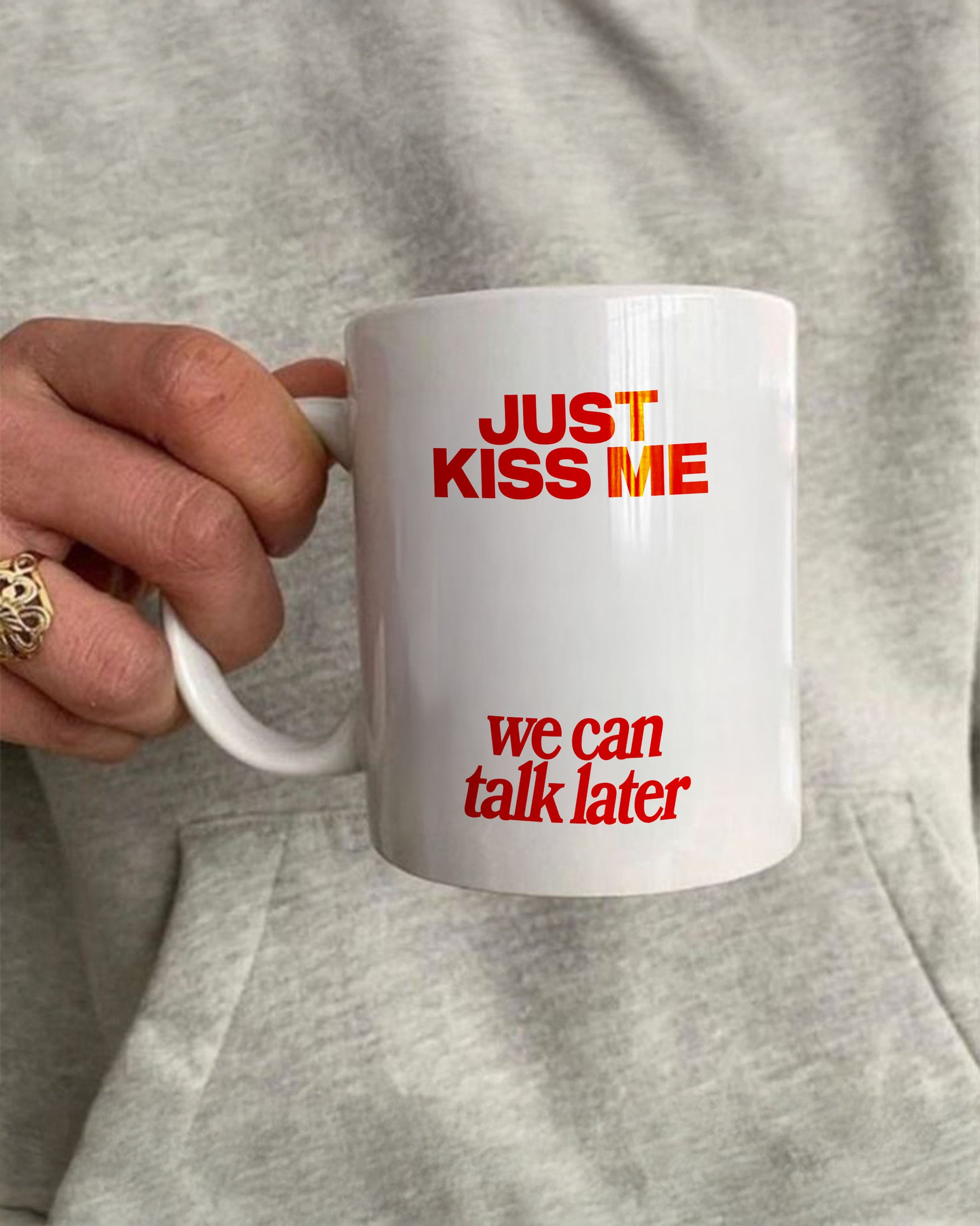 The Just Kiss Me mug by spicy thoughts® is for those who don’t do small talk before caffeine. With bold red lettering that reads “Just Kiss Me – We Can Talk Later”, this mug serves a perfect mix of humor and attitude.
