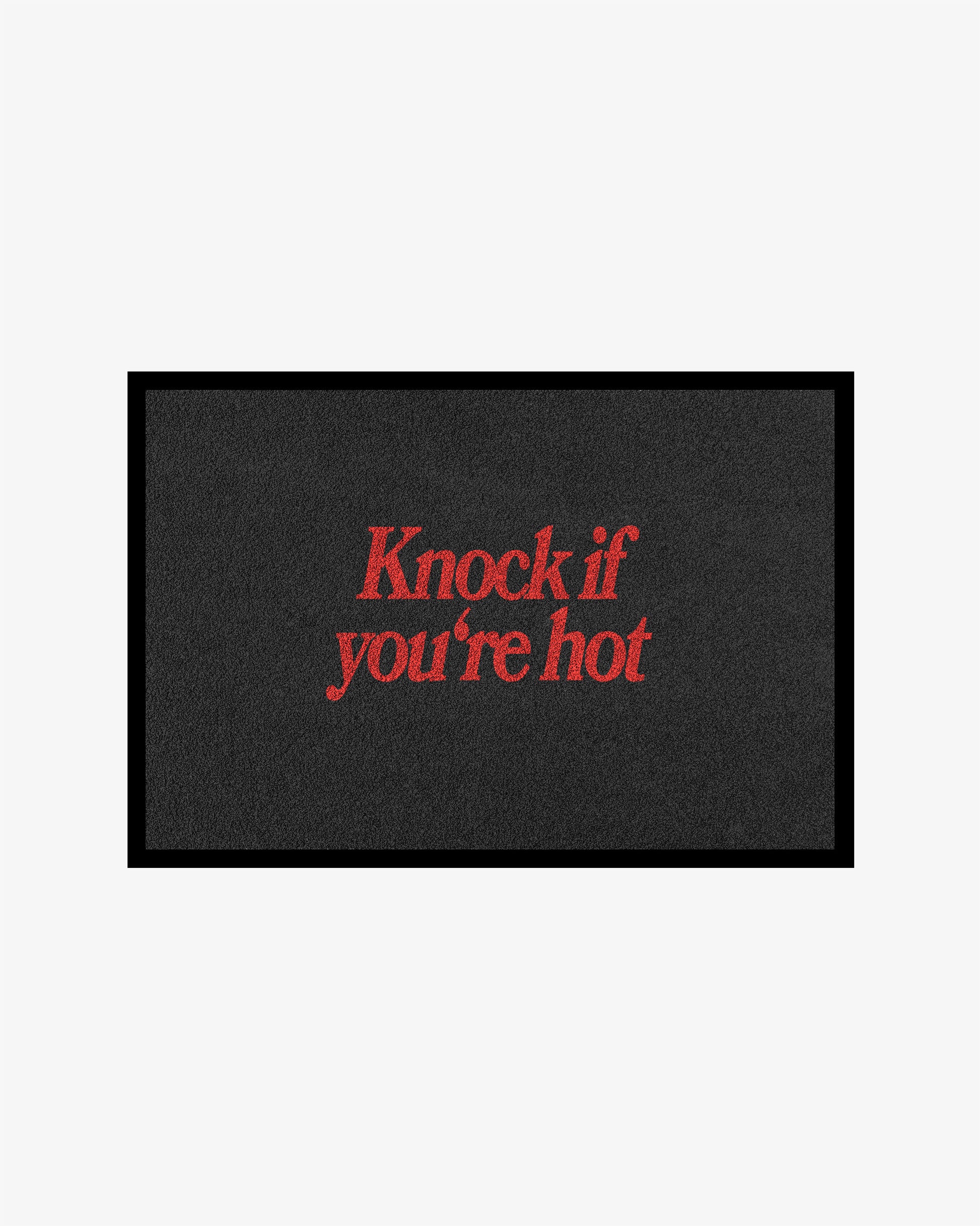 The “Knock If You’re Hot” doormat by spicy thoughts® is your bold invitation to step into good vibes only. With its clean black base and fiery red print, it brings a cheeky, confident touch to any entrance — perfect for those who love a little attitude with their aesthetics.