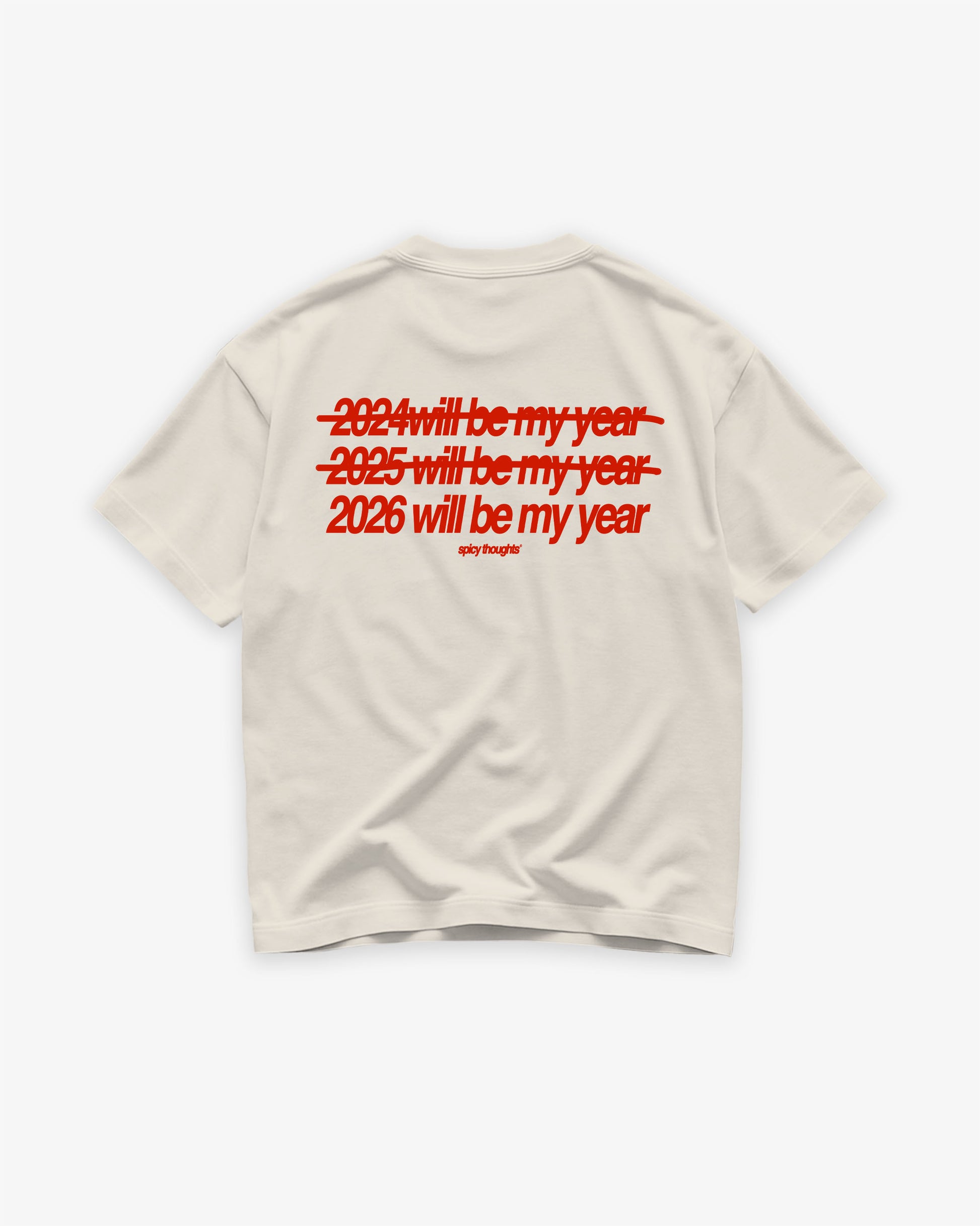 This tee is for everyone who keeps promising themselves a “fresh start” and then wakes up in the same chaotic loop — but refuses to give up the bit. Bold red typography, crossed-out years, and one last shot at greatness.
