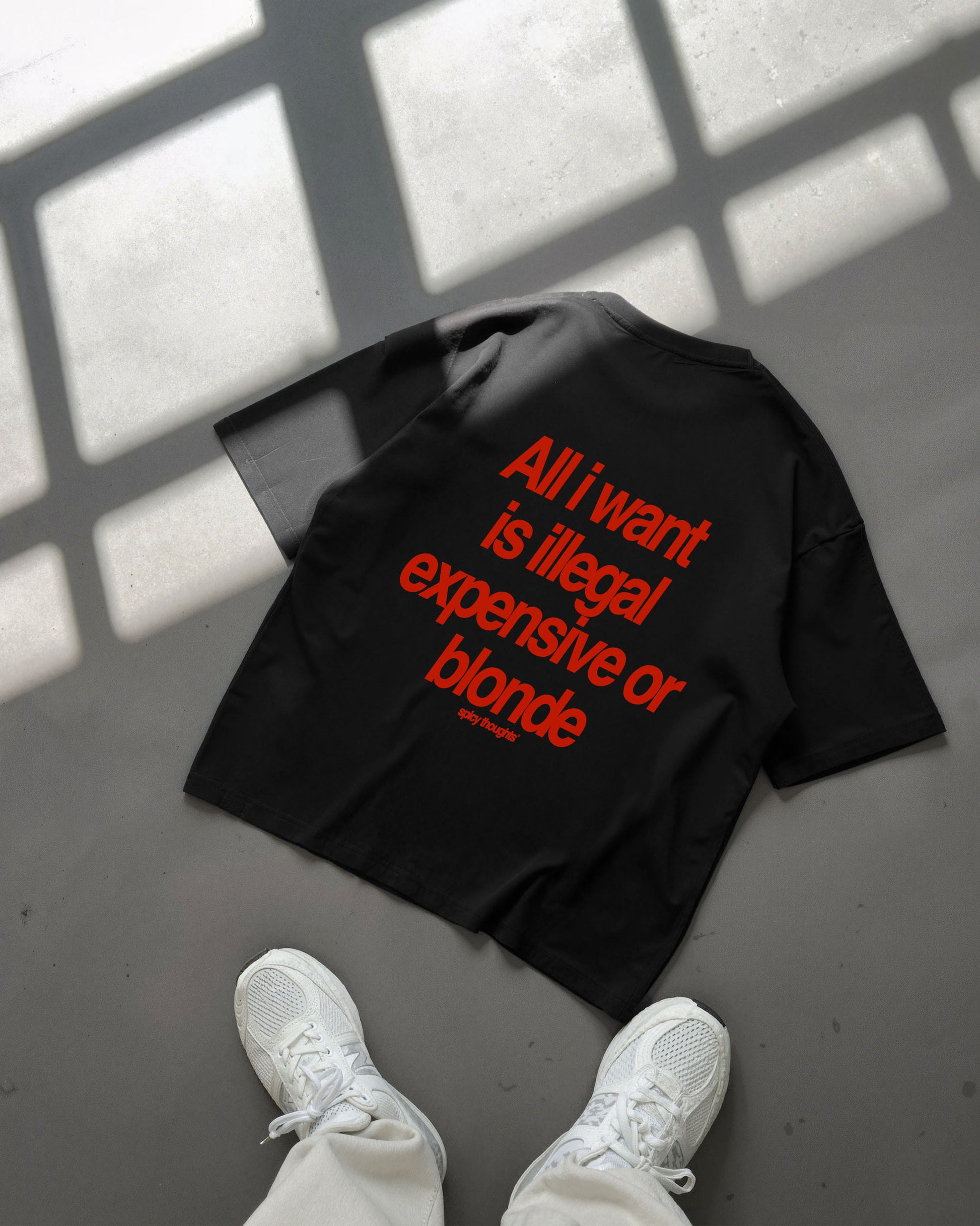 Heavy Oversized Tee - All I Want Is Illegal, Expensive or Blonde