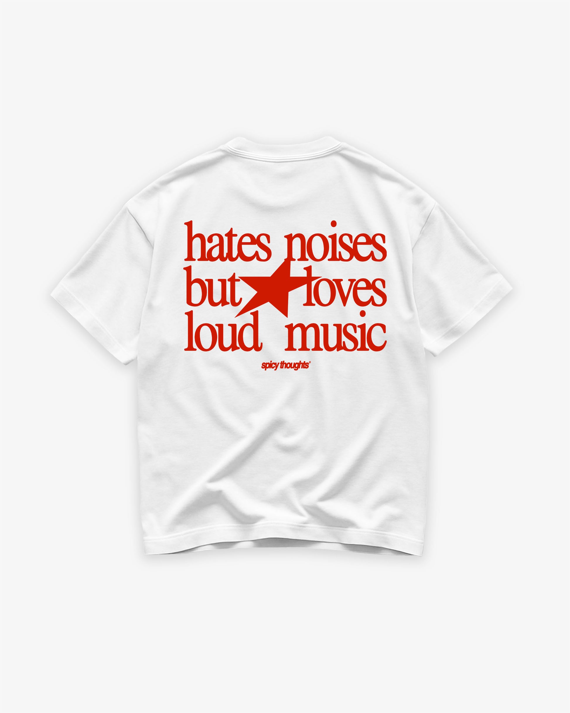 Heavy Oversized Tee - Hates Noises But Loves Loud Music