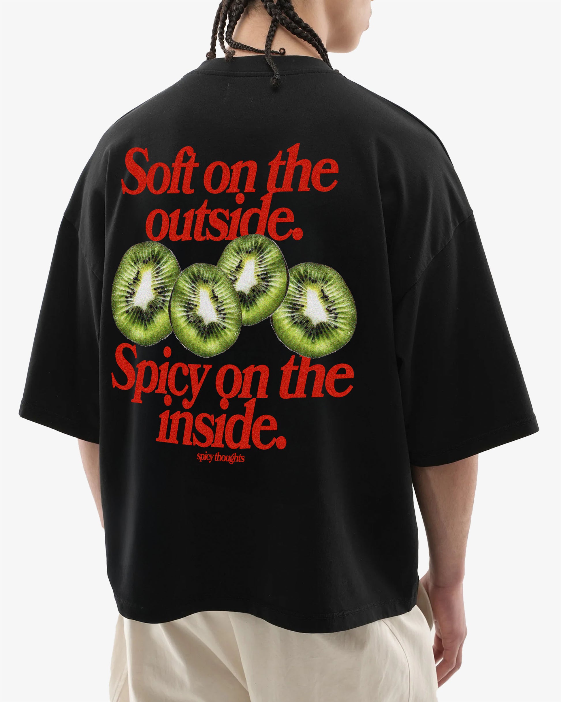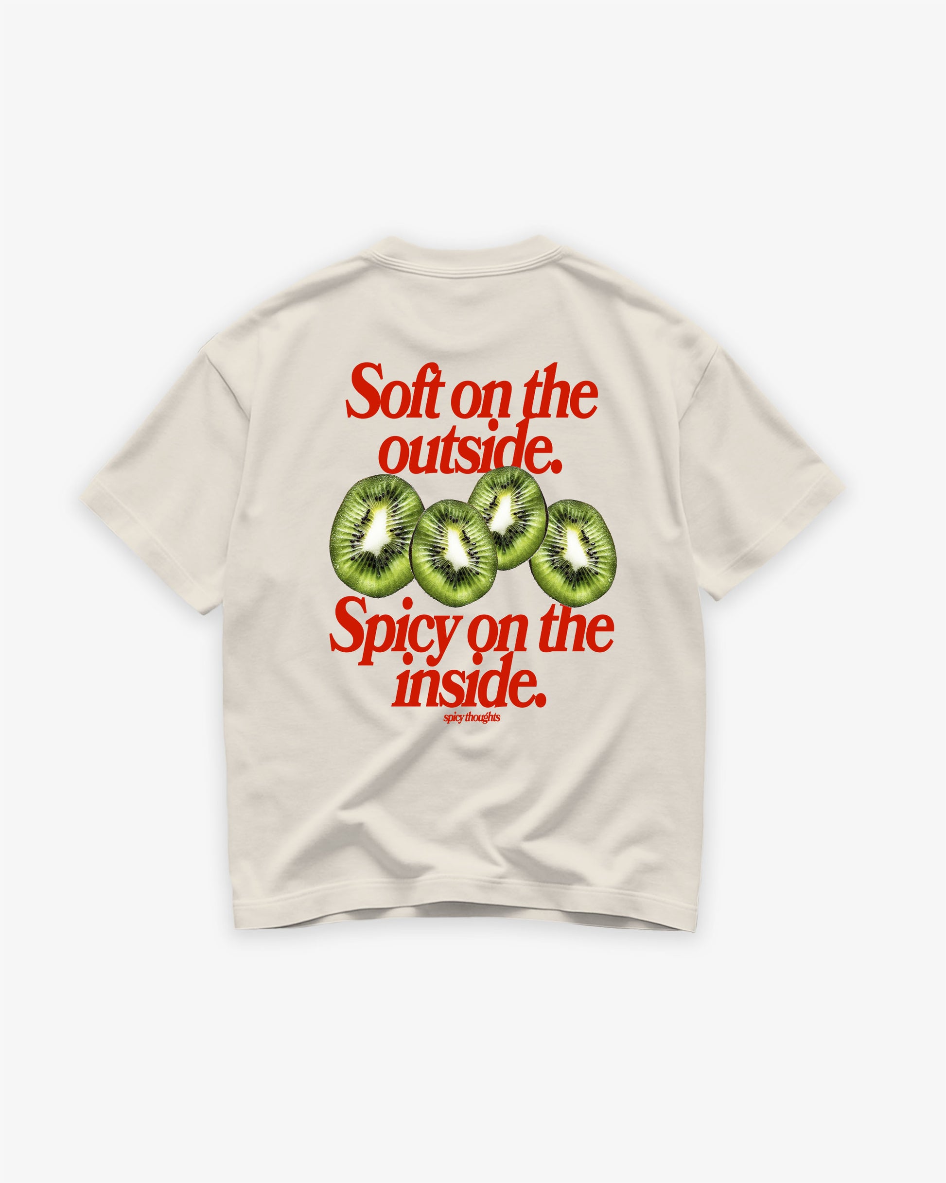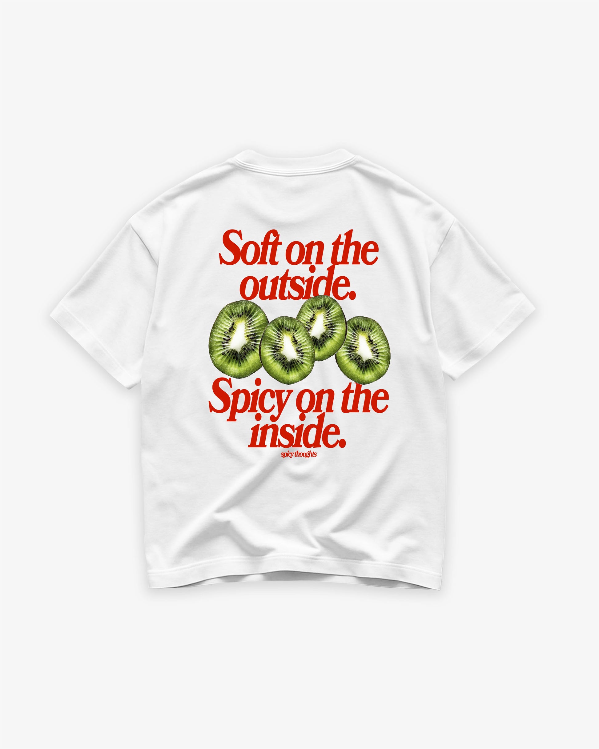 This tee is for the ones who stay soft but strike hard. A cluster of kiwis on the back says it all: tender vibes outside, spicy thoughts inside.