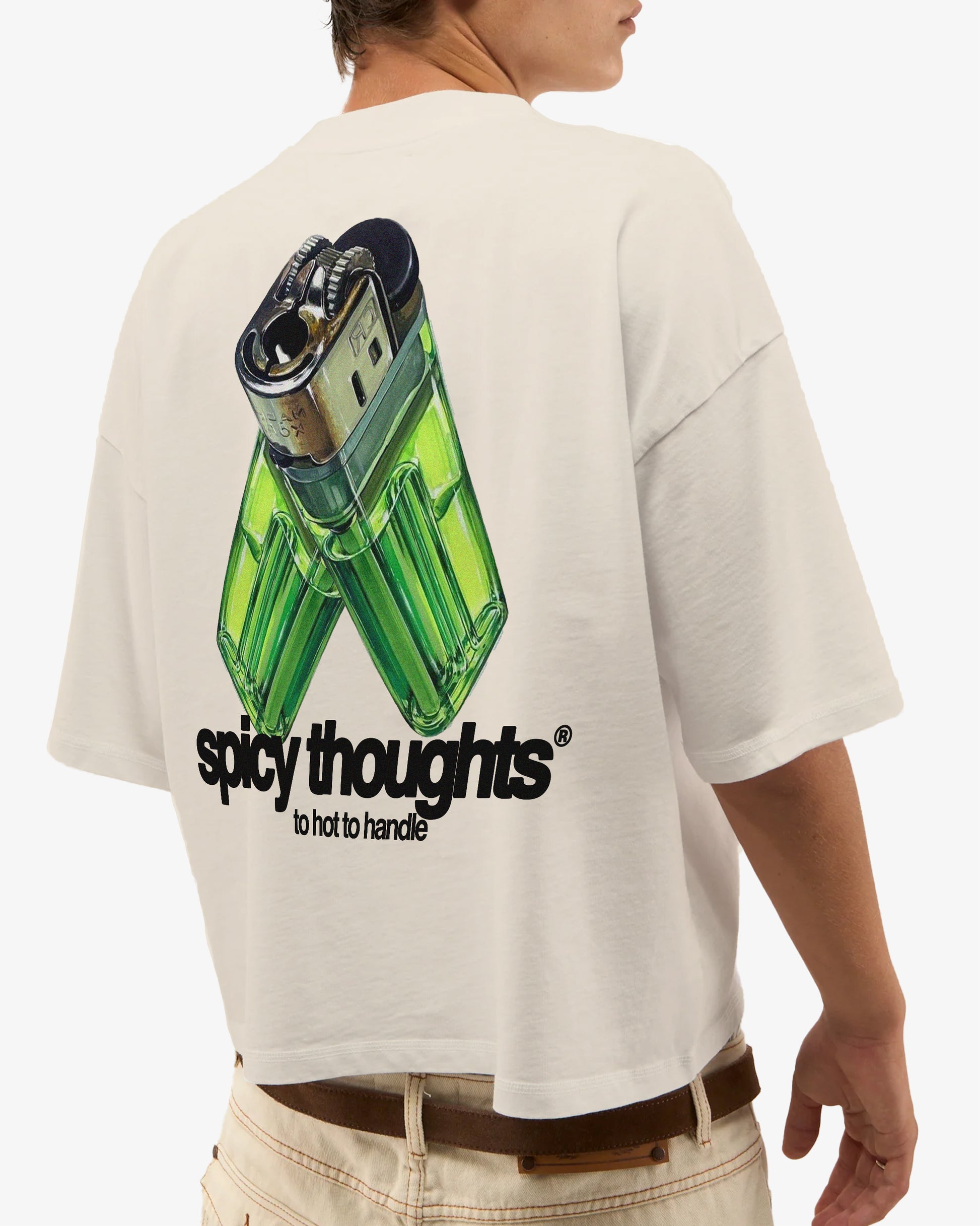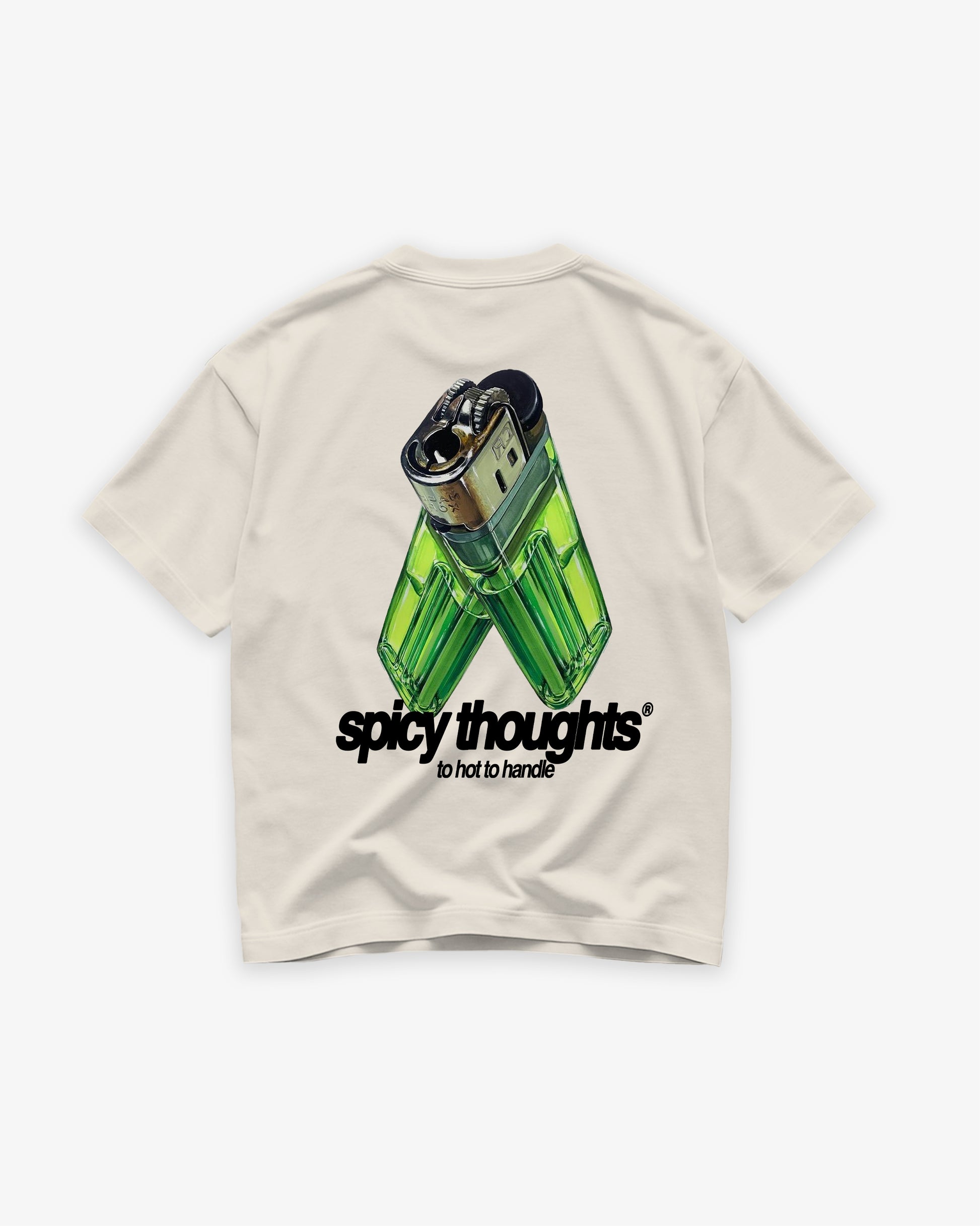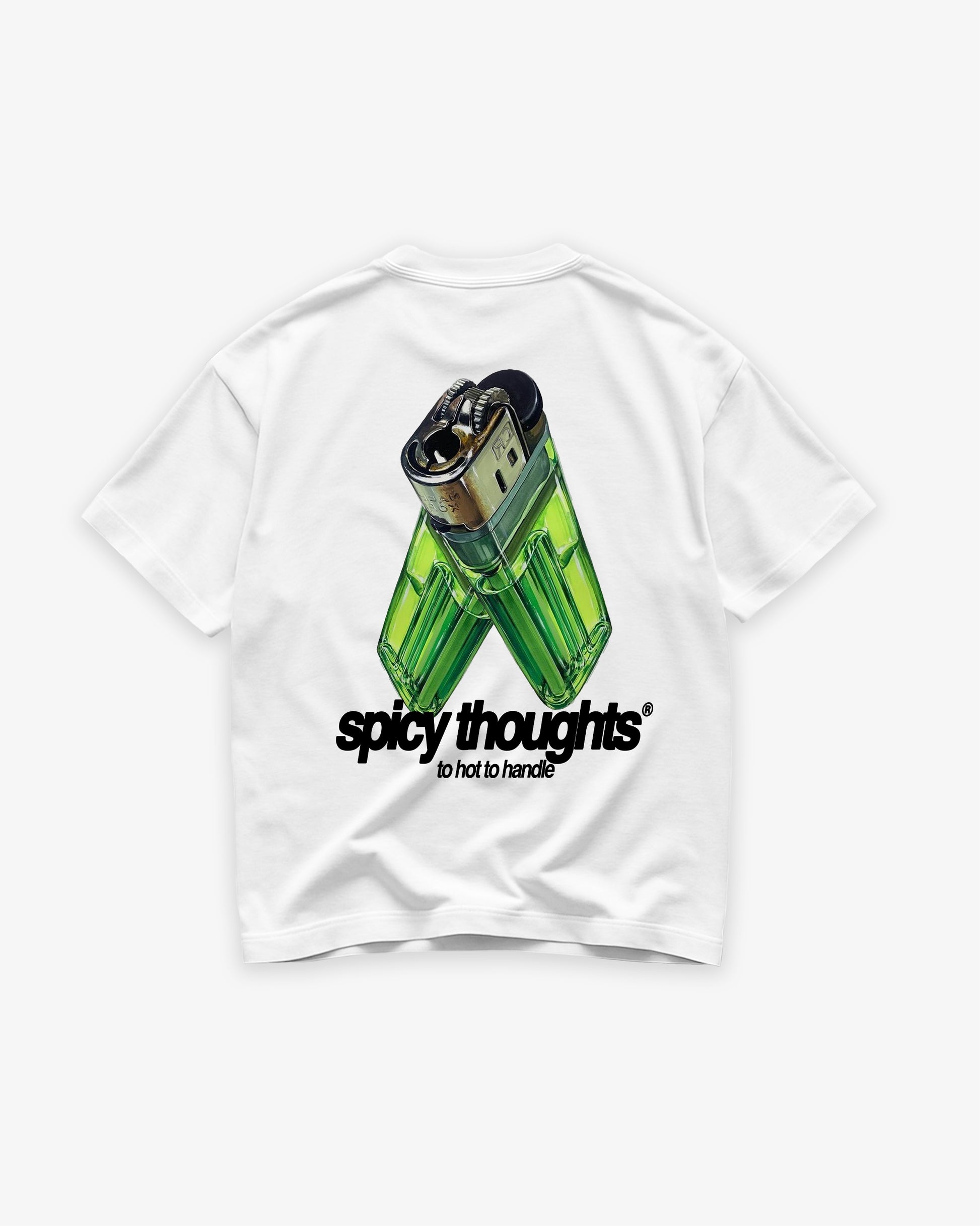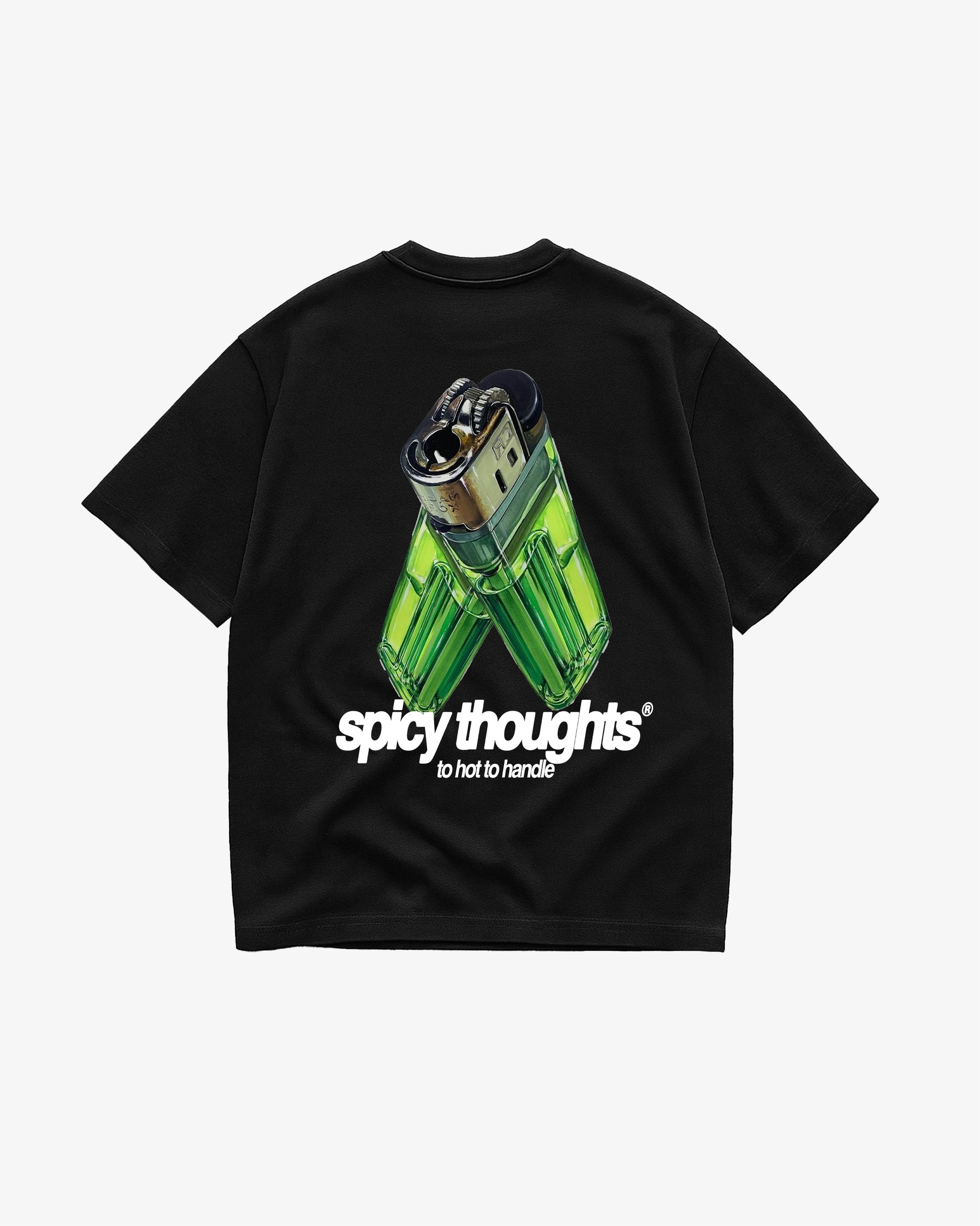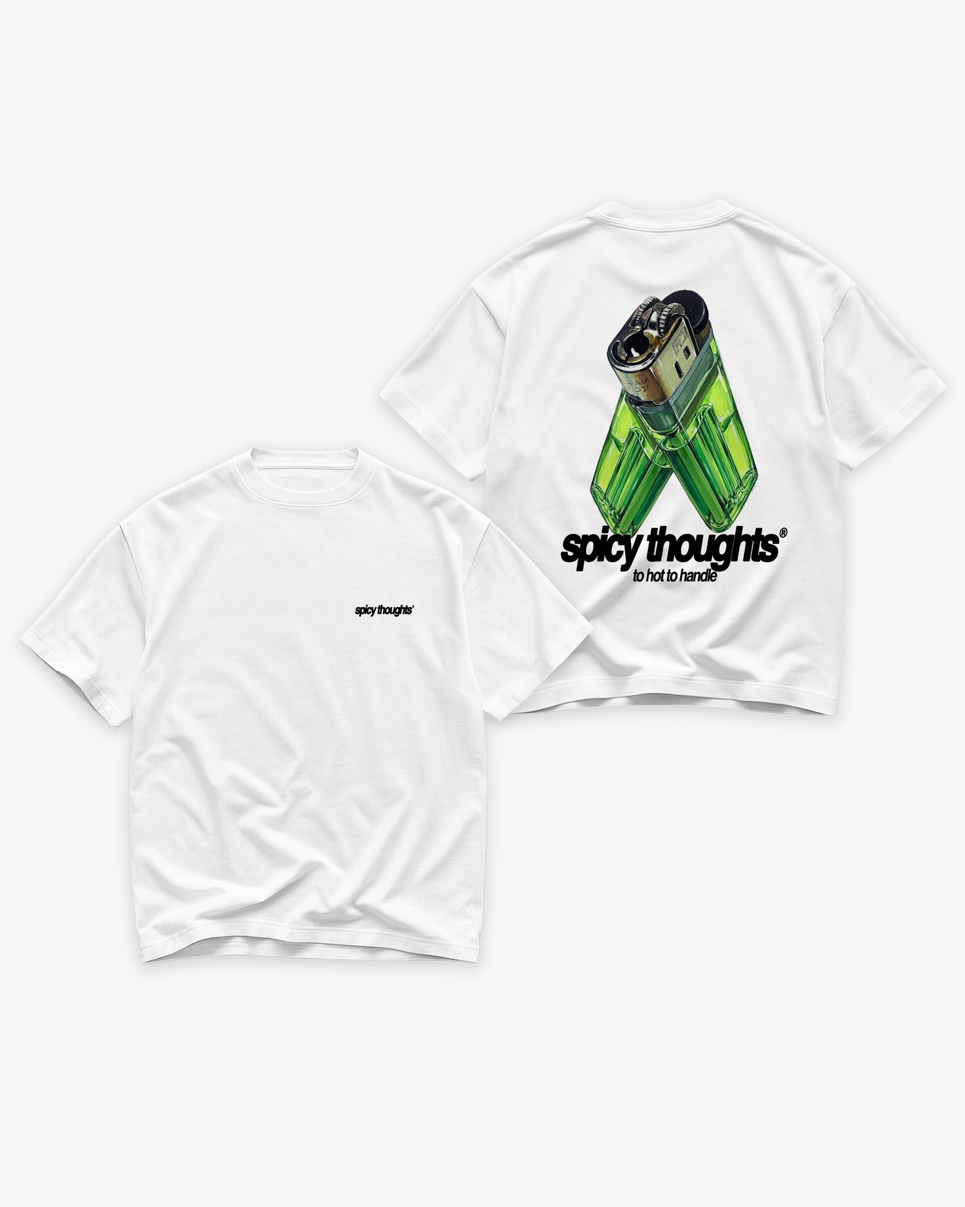 Striking, bold, and impossible to ignore. This tee brings the heat with a vivid green lighter print and the unapologetic claim too hot to handle.