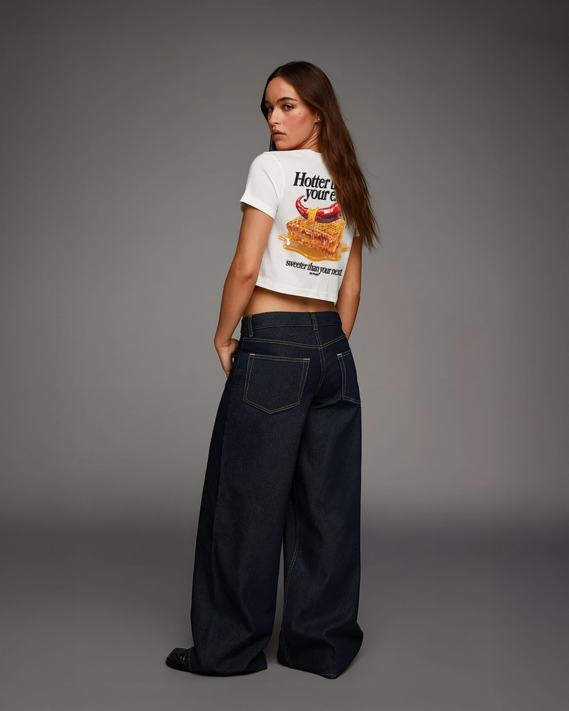 This cropped tee brings the heat and honey energy — bold, playful, and unapologetically confident. Featuring a fiery chili and dripping honey graphic, it’s a visual statement for anyone who knows their worth (and looks too good to forget).