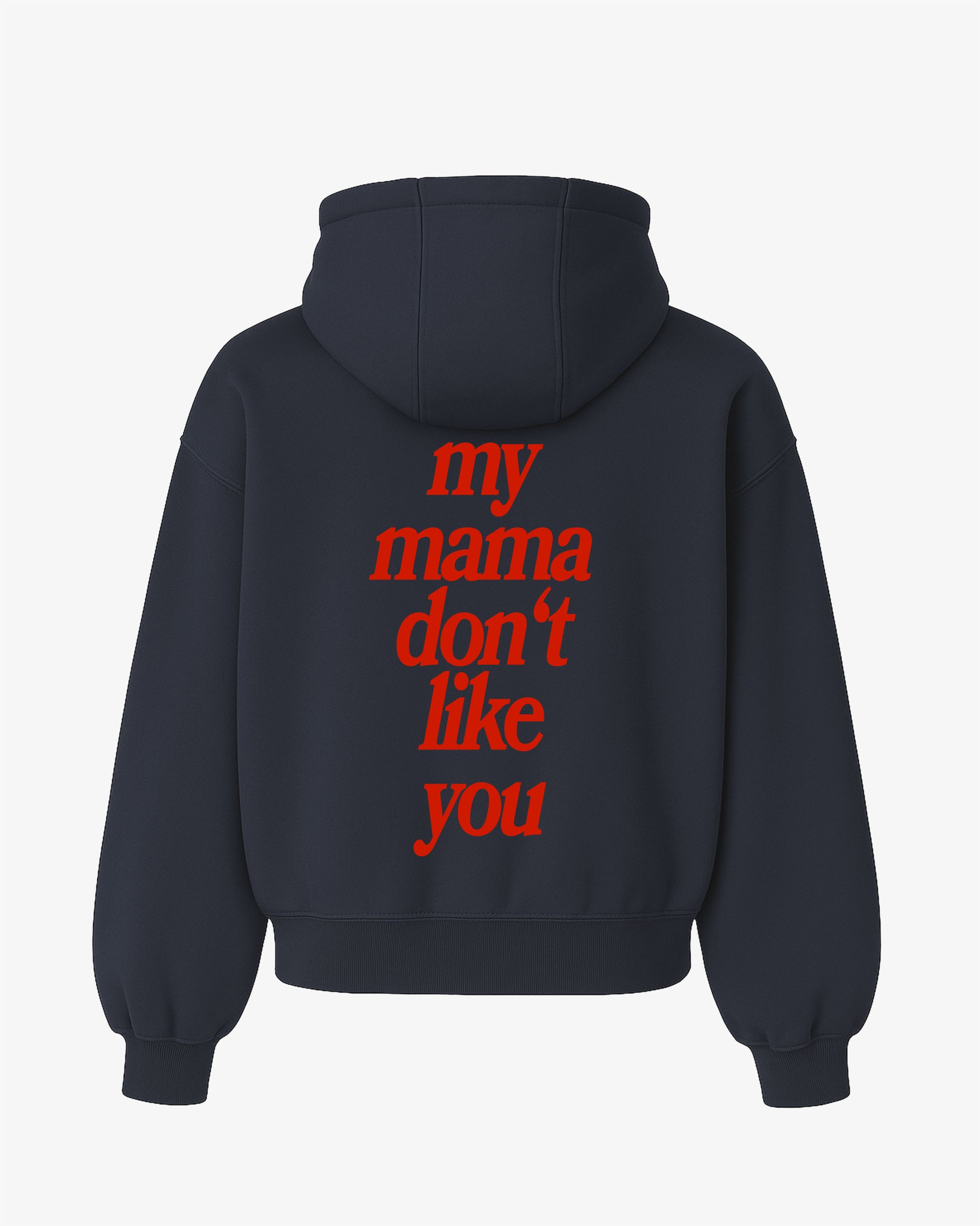 Der My Mama Don’t Like You Hoodie von spicy thoughts® bringt toxische Romantik auf den Punkt – mit einem Augenzwinkern und einem Schuss Trotz. Für alle, die über ihr Liebesleben lachen können, statt darüber zu weinen. Emotional damage, but make it fashion.