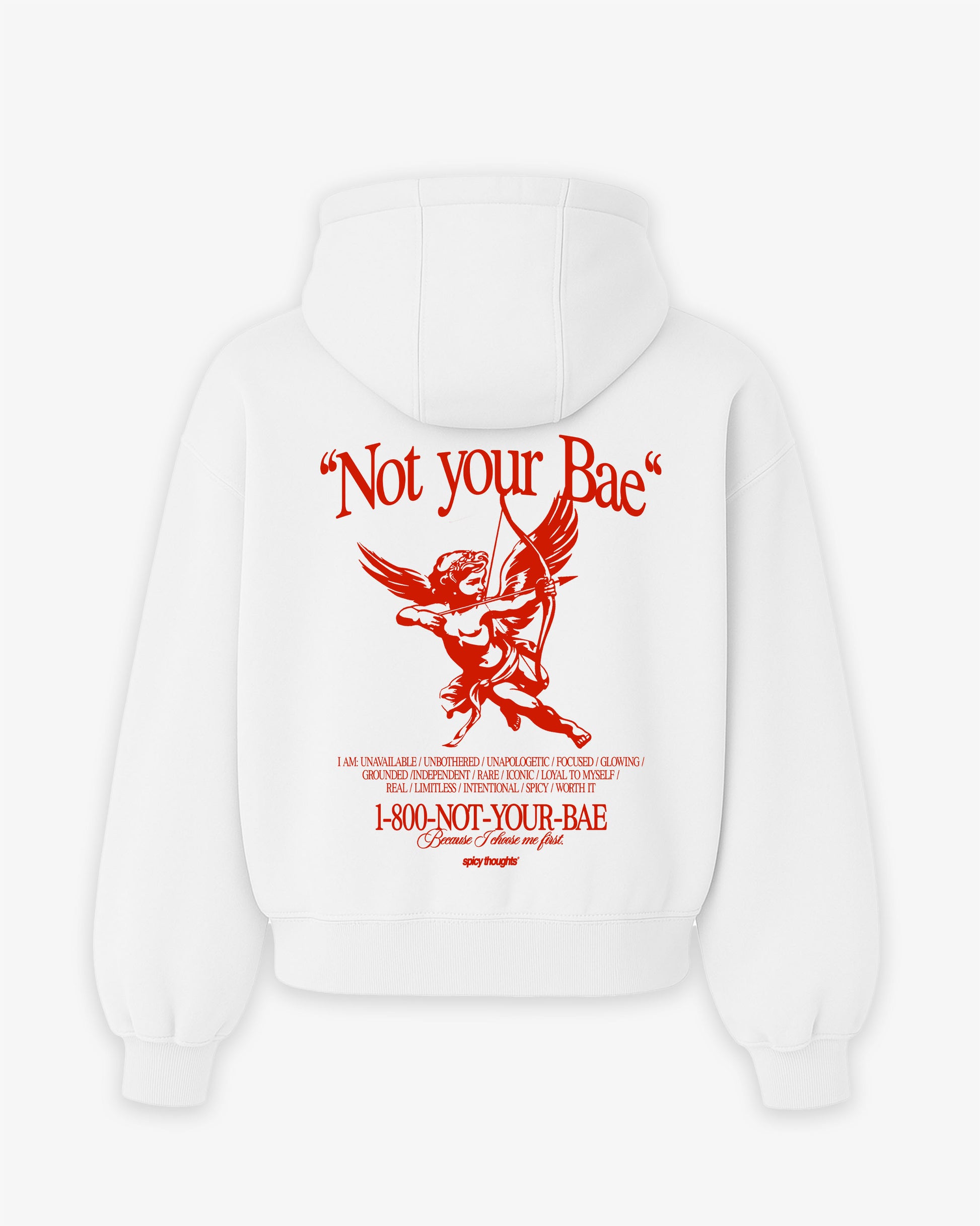 Der Not Your Bae Hoodie von spicy thoughts® ist eine Absage an Situationships und halbe Sachen – für alle, die wissen, was sie wollen und was sie wert sind. Ein Mix aus Softgirl-Glow und Don’t-Touch-My-Energy-Vibe