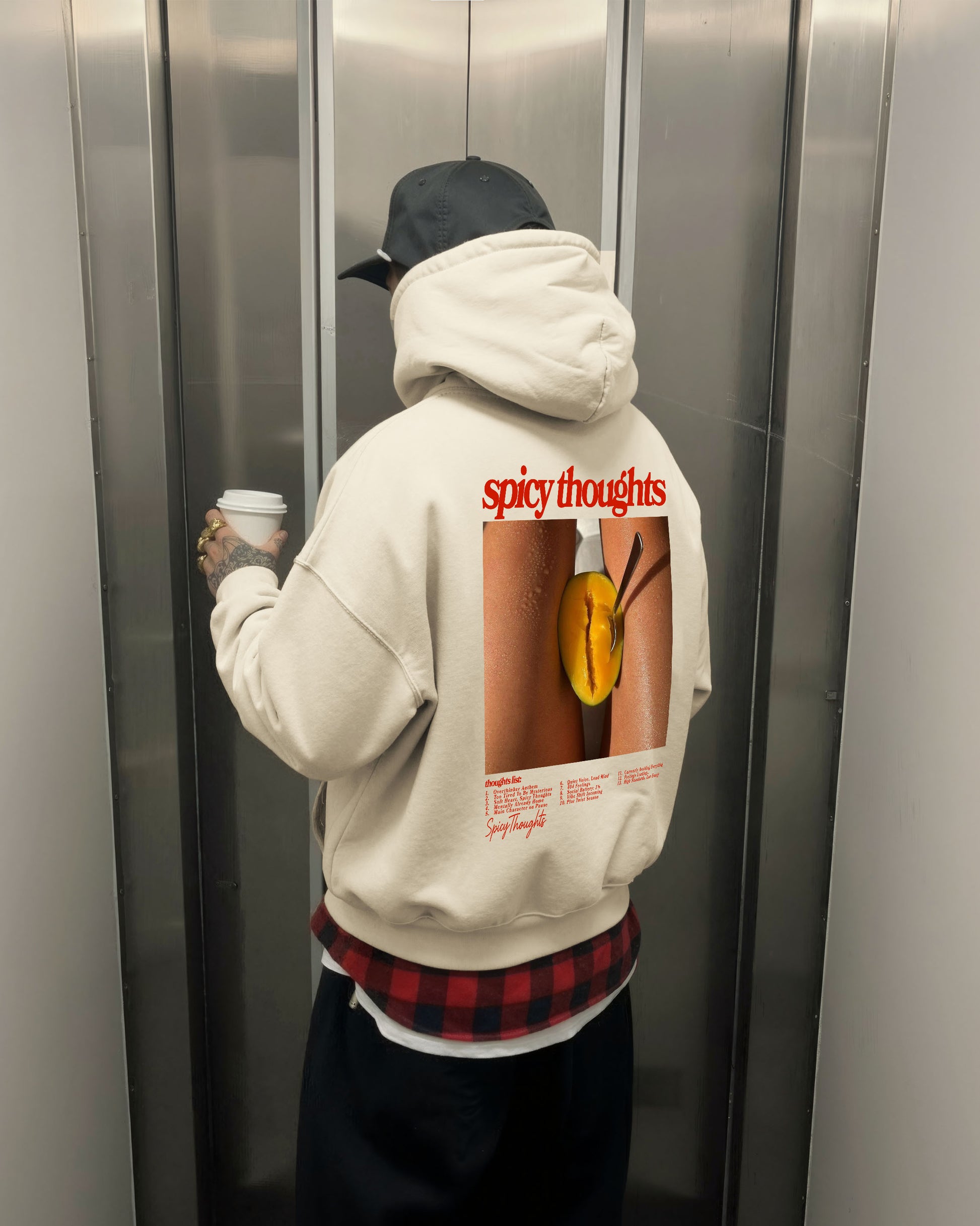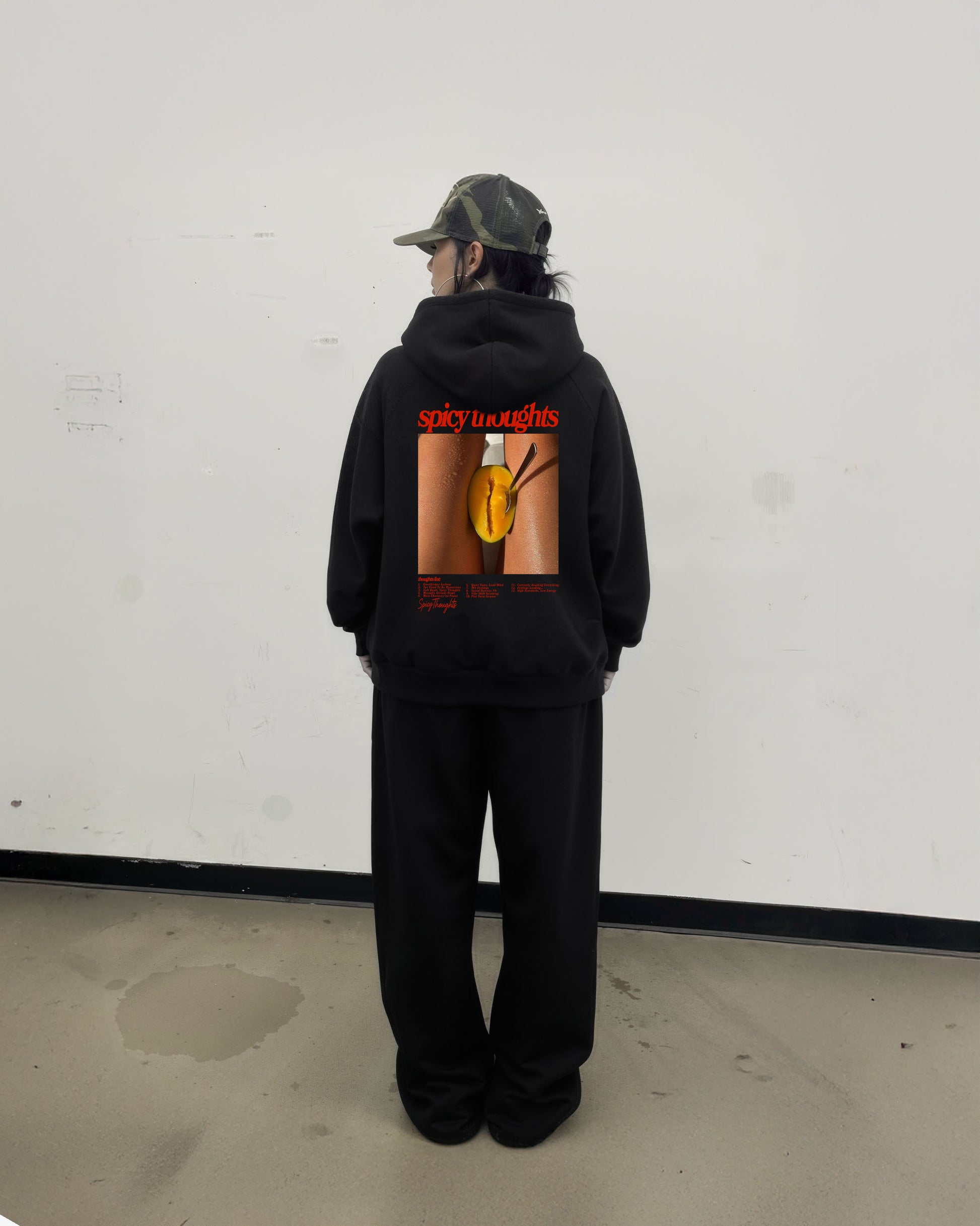 This hoodie features our signature Spicy Thoughts artwork – a visual innuendo wrapped in juicy fruit and bolder statements. Designed to turn heads and spark curiosity.