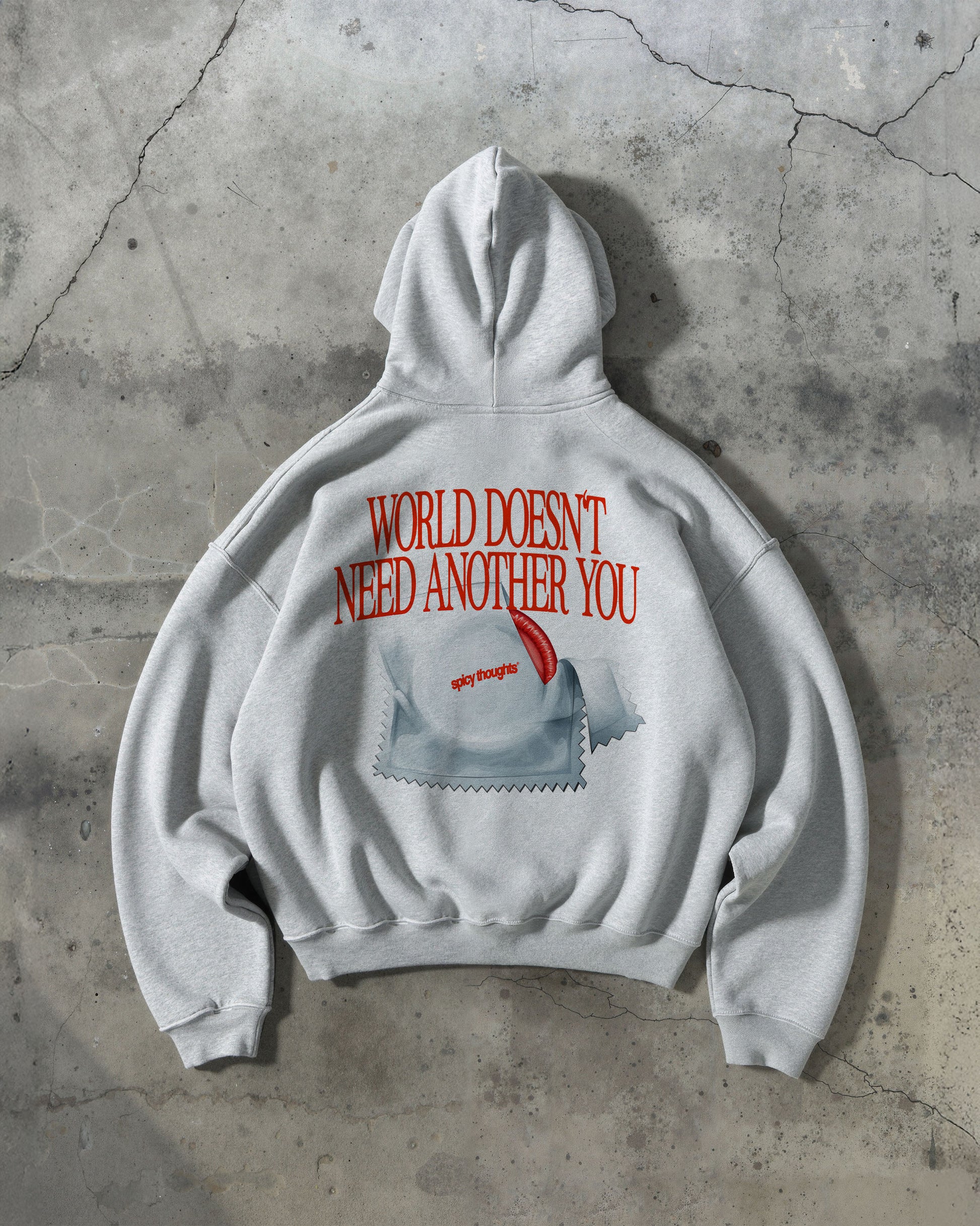 Der World Doesn’t Need Another You Hoodie von spicy thoughts® kombiniert provokanten Humor mit cleanem Design. Ein ironisches Statement für alle, die wissen, dass weniger manchmal mehr ist – vor allem von dir.